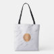 Trendy marble copper glamourous books tote bag with metallic look copper circle and your custom name / monogram. Personalise it with your name inside the circle on the front side, and with your monogram inside the circle on the back.