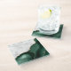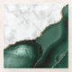 This elegant glass coaster features a digital image of white marble and emerald green agate trimmed with faux gold glitter.