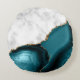 White Marble Gilded Teal Agate Round Cushion