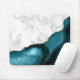 White Marble Gilded Teal Blue Agate Mouse Pad