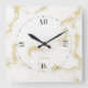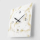 Modern white faux marble stone texture with light gold veins accents and black numerals. Suggested simple monogram.