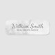This name tag features name in grey script font style and title in grey sans serif font style on white marble background.