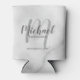 White Marble Modern Script Personalised Groomsmen Can Cooler