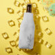 This design features personalised name in grey modern handwriting script font on white marble background.
