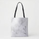 This design features personalised name in grey modern handwriting script font on white marble background.