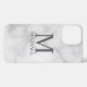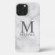 features personalised monogram and name in grey classic serif font style on white marble background.