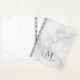 Professional planner features custom monogram, name and text in grey classic serif font style on white marble background.