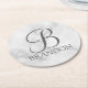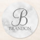 White Marble Personalised Script Monogram and Name Round Paper Coaster