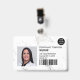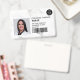 A modern, and professional elegant white marble nurse photo id badge with logo and barcode horizontal layout.