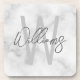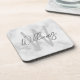 White Marble Script Personalized Monogram and Name Coaster