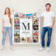Create your own personalised 12 photo collage fleece blanket with your custom images, monogram and name on a stylish elegant white marble background.