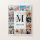 Create your own personalized 12 photo collage puzzle with your custom images, monogram and name on a stylish elegant white marble background.