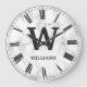 Create your own personalised wall clock with your custom name on an elegant white marble background.