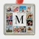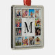 Create your own personalised 12 photo collage metal ornament with your custom images and monogram on a stylish elegant white marble background.
