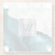 White Marble Teal Blue Agate Silver Monogram Glass Coaster