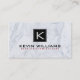 Elegant simple minimalistic modern business card design-marble and kitchen floor installer. White marble stone texture print with black and red accents. Simple elegant with customisable monogram.