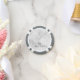 featuring monogram and name in grey modern sans serif font style on white marble background.