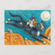 WHITE MICE & BLACK CAT ON HALLOWEEN SCAVENGER HUNT POSTCARD