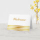 White Minimal with Gold Stripes Welcome Card