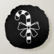 White Minimalist Candy Cane With A Bow On Black Round Cushion