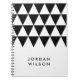 Modern minimalist white notebook featuring a black triangle pattern that you can personalise with your name. Great for school or office.