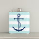 White Mint & Blue Wide Stripes Pattern Anchor Hip Flask