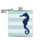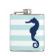 White Mint & Blue Wide Stripes Pattern Seahorse Hip Flask