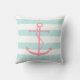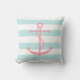 White Mint & Pink Wide Stripes Pattern Anchor Cushion