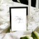 A modern classic wedding table number card designed with elegant serif typography and refined minimal style. Perfect for timeless, black-and-white wedding décor and formal receptions.