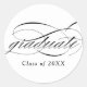 White Modern Elegant Script Graduation Classic Round Sticker features a beautiful and elegant script, along with your class year.