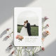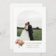 Modern and chic. This lovely wedding save the date card features a beautiful bouquet of voluptuous roses against a crisp white background. The design includes a couple photo in boho arch frame, contemporary set of fonts in olive green at the front and additional optional text at the back.
