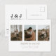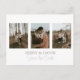 Announce your special day with this modern photo collage save the date postcard, featuring three romantic photos beautifully framed in white and overlaid with bold date typography. The front includes a delicate script “Save the Date” and the clean reverse side showcases the couple’s initials alongside an elegant botanical accent. This design perfectly blends rustic wedding charm with minimalist style and a neutral colour palette, making it an ideal and easy to mail wedding announcement. A sophisticated choice for couples celebrating love with a soft script touch and personal engagement highlights.