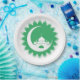 Silhouette in white of a mosque in a crescent moon with a decorative border. The background is green but can be customised to any colour you like. Perfect for the month of Ramadan.