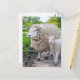White mother sheep and lamb standing on road postcard