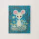 White Mouse with Yellow Flowers & Butterfly. Jigsaw Puzzle