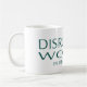 Mug with wrap-around green-on-white Disruptive Women in Health care logo.