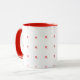 11oz white mug featuring a playful pattern of small red hearts with filled centers. Perfect for cozy coffee moments or as a sweet gift for loved ones.