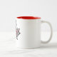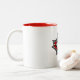 A white mug with maple ;leaf design with different symbols and most popular places of Canada.
