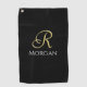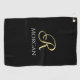 White Name & Large Gold Initial on Black Golf Towel