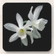This elegant coaster features two lovely pure white daffodils on a black background.