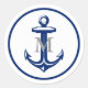 White Navy Blue Anchor | Monogrammed Classic Round Sticker