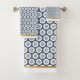 WHITE NAVY GEOMETRIC CIRCLES BATHROOM TOWEL SET