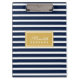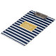 White Navy Stripe Pattern Gold Name Template Clipboard