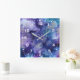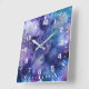 Clock with a white square clock face on a background with a modern abstract purple, blue, and gold pattern. Customisable. Modern and trendy, yet classic, this clock is perfect for any decor.