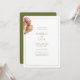 Modern and trendy with vintage feel. This lovely wedding invitation features a bouquet of voluptuous rose accents against chic white and olive green backgrounds. The set of contemporary fonts exude a stylish modern elegance. Personalise with wedding website and RSVP detail at the back.