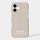 Destei's white polka dots pattern on a beige background color. There is also a personalizable text area for a name or other custom text. Feel free to change the colors to your liking.