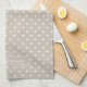 White On Beige Polka Dots Pattern With Custom Name Tea Towel