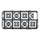 Safeguard your iPhone 8 Plus/7 Plus from shocks with an impact resistant Case-Mate Tough case featuring a bold geometric pattern with white squares with space between them on a black background. The thick squares each contain a thin white circle with a thick equal sign inside. In contrast, the thin squares each contain a thick white circle that touches the square’s edges with a thin vertical equal sign inside.