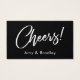 Offer your guests a free cocktail or two with these fun, bold drink tickets. On one side you read "Have one on the house!" and "Good for One Adult Beverage" and on the other side is "Cheers!" and a template place holder for your names. Non-editable text graphic overlays are rendered in a modern handwriting script font. Other text appears in a simple sans-serif font; this can be changed if you prefer. All text is in white and the background is an editable black; you may change this to any colour you prefer, should you like a change. Please do not hesitate to reach out if you have requests or need customising assistance. // 100 //