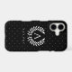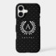 Destei's tiny white polka dots pattern on a black background color paired with a personalizable monogram and name. The monogram sits within a classic laurel wreath with the name placed just below for a balanced, polished look. A timeless choice for anyone drawn to a clean, elegant style.